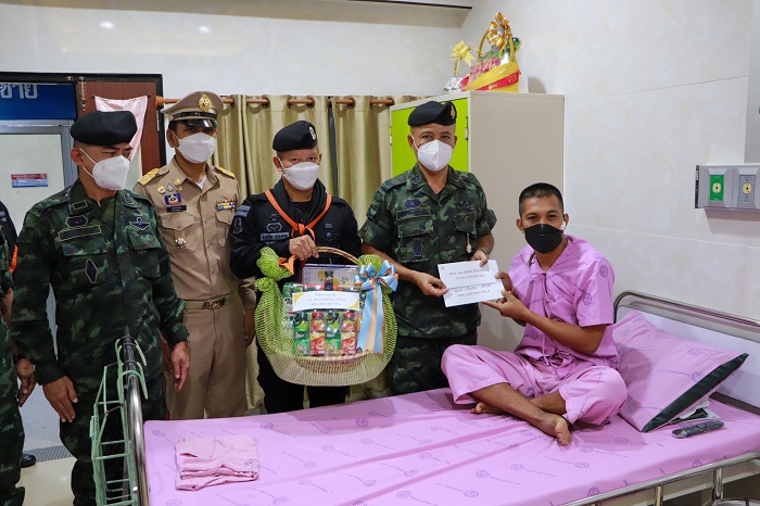 โอกาสนี้ รองแม่ทัพภาคที่ 4 ได้สอบถามและพูดคุย พร้อมนำความห่วงใยจากผู้บัญชาการทหารบกและแม่ทัพภาคที่ 4 ส่งให้กำลังพล และมอบกระเช้าพร้อมเงินช่วยเหลือเป็นขวัญกำลังใจ และได้กล่าวขอบคุณกำลังพลที่ได้ปฏิบัติหน้าในการช่วยเหลือพี่น้องประชาชนให้มีความปลอดภัยในทุกมิติ และขอให้มีกำลังใจที่ดีในการทำหน้าที่สร้างความมั่นคงในพื้นที่ต่อไป