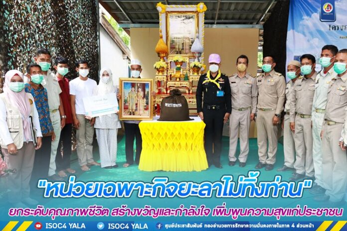 วันนี้ 28 สิงหาคม 2565 เวลา 10.00 น. พลตรี อุทิศ อนันตนานนท์ รองแม่ทัพภาคที่ 4/รองผู้อำนวยการรักษาความมั่นคงภายในภาค 4 ส่วนหน้า/หัวหน้าจิตอาสา 904 ภาค 4 ลงพื้นที่ ไปยังบ้านเลขที่ 67/4 หมู่ 5 ตำบลตาเนาะปูเต๊ะ อำเภอบันนังสตา จังหวัดยะลา เพื่อส่งมอบบ้านให้กับนายอาแว ดีแม อายุ 66 ปี ตามโครงการ “หน่วยเฉพาะกิจยะลาไม่ทิ้งท่าน” ยกระดับคุณภาพชีวิต สร้างขวัญและกำลังใจ เพิ่มพูนความสุขแก่ประชาชน พร้อมทั้งได้มอบพระบรมฉายาลักษณ์ พระบาทสมเด็จพระเจ้าอยู่หัวฯ และสมเด็จพระนางเจ้า พระบรมราชินี พร้อมกันนี้คณะ ได้มอบชุดเครื่องนอน เครื่องใช้ไฟฟ้า เครื่องอุปโภค บริโภคแก่ครอบครัว และมอบป้ายชื่อพร้อมเลขที่บ้าน โดยมีหัวหน้าส่วนราชการ, ผู้นำท้องที่, ผู้นำท้องถิ่น ตลอดจนประชาชนในพื้นที่ร่วมให้การต้อนรับและร่วมกิจกรรม พร้อมกันนี้ยังได้มอบเครื่องอุปโภคบริโภคให้กับกลุ่มเปราะบางและผู้พิการในพื้นที่ จำนวน 10 ชุด