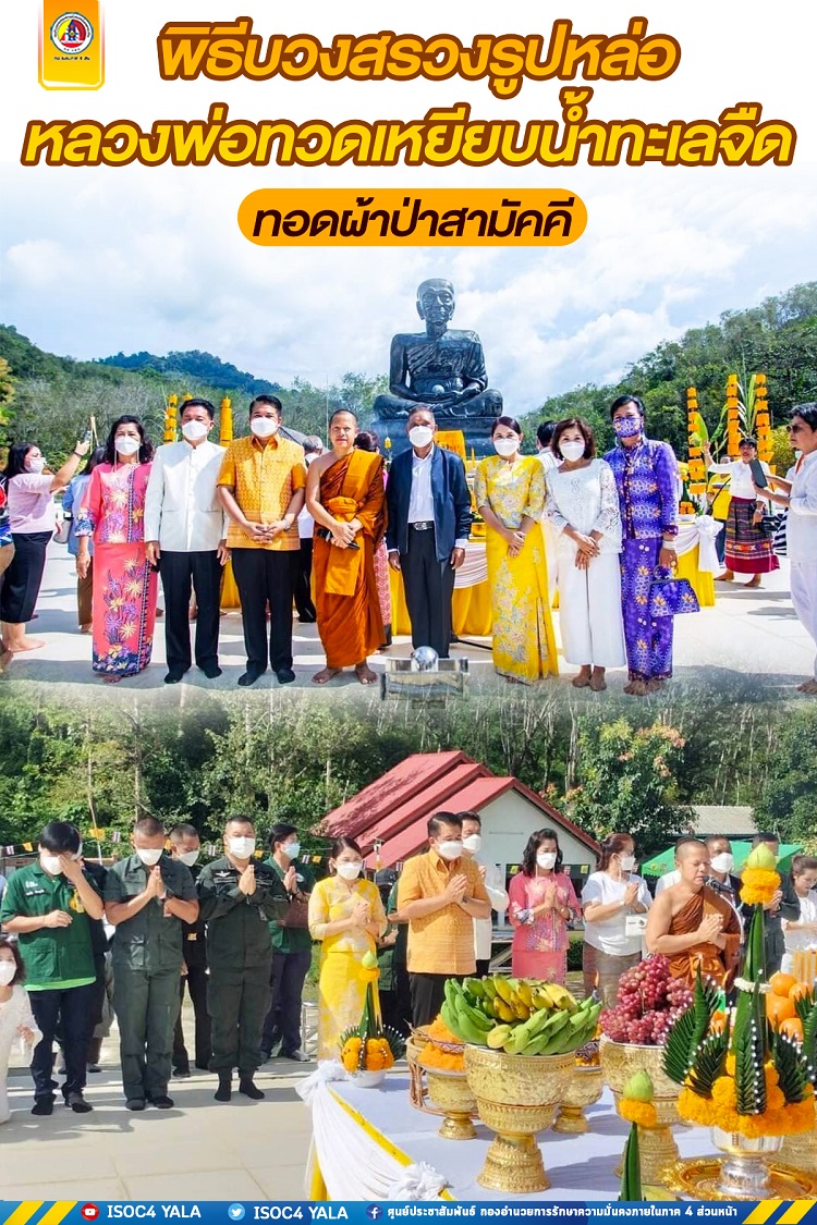 เมื่อวันที่ 27 สิงหาคม 2565 พลเอก มณี จันทร์ทิพย์ ที่ปรึกษากองอำนวยการรักษาความมั่นคงภายในภาค 4 ส่วนหน้า/เลขาธิการศูนย์พัฒนาและส่งเสริมพระพุทธศาสนาจังหวัดชายแดนภาคใต้ เป็นประธานในพิธีบวงสรวงรูปหล่อหลวงปู่ทวดเหยียบน้ำทะเลจืด และพิธีทอดผ้าป่าสามัคคี ที่วัดบ่อน้ำร้อน หมู่ที่ 2 ตำบลตาเนาะแมเราะ อำเภอเบตง จังหวัดยะลา โดยมี นายเอก ยังอภัย ณ สงขลา นายอำเภอเบตง พันตำรวจเอก เอกชัย พราหมณกุล ผู้กำกับการสถานีตำรวจภูธรเบตง พันตำรวจโท จาริพัฒน์ ทองแดง ผู้บังคับหน่วยเฉพาะกิจตำรวจตระเวนชายแดนที่ 44 หัวหน้าส่วนราชการ พ่อค้า ประชาชน จำนวนมากเข้าร่วม พร้อมนำอาหาร คาวหวาน มาร่วมทำบุญและแจกจ่ายให้ผู้ที่มาร่วมงานบุญได้รับประทาน