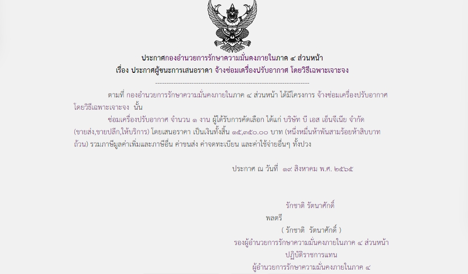 จัดซื้อ จัดจ้างประกาศผู้ชนะการเสนอราคา ประกาศผู้ชนะการเสนอราคา จ้างซ่อมเครื่องปรับอากาศ โดยวิธีเฉพาะเจาะจง August 29, 2022 423 Share Facebook Twitter Google+ Telegram LINE