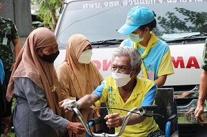เมื่อวันที่ 29 สิงหาคม 2565 เวลา 08.30 น. หน่วยเฉพาะกิจกรมทหารพรานที่ 46 มอบหมายให้ พันตรี ศิริพล จังพานิช นายทหารฝ่ายกิจการพลเรือน, ชุดเสริมสร้างความเข้าใจหญิง ผู้บังคับกองร้อยทหารพรานที่ 4601, ผู้บังคับกองร้อยทหารพรานที่ 4604, ผู้บังคับกองร้อยทหารพรานที่ 4605 และผู้บังคับกองร้อยทหารพรานที่ 4615 ร่วมกับ ศูนย์ประสานการแพทย์จังหวัดชายแดนภาคใต้ (ศปกพ.จชต.) ลงพื้นที่มอบกายอุปกรณ์ (เครื่องช่วยพยุงการเดิน,ไม้เท้า 3 ขา, รถเข็นสามล้อโยก และไม้เท้าค้ำยัน) ให้กับประชาชนผู้พิการทางการเคลื่อนไหวในพื้นที่ พร้อมทั้งได้มอบถุงยังชีพเพื่อเป็นขวัญและกำลังใจ ลดรายจ่ายภายในครอบครัว ในพื้นที่ อำเภอรือเสาะ จังหวัดนราธิวาส จำนวน 6 ราย ได้แก่ นายดอเล๊าะ อูเซ็ง อายุ 52 ปี บ้านเลขที่ 36/8 บ้านละหาร หมู่ที่ 5 ตำบลสามัคคี อำเภอรือเสาะ จังหวัดนราธิวาส มอบไม้เท้าค้ำยัน ,นายอับดุลดาลี ยะบะ อายุ 59 ปี บ้านเลขที่ 6 บ้านละหาร หมู่ที่ 5 ตำบลสามัคคี อำเภอรือเสาะ จังหวัดนราธิวาสมอบไม้พยุง 3 ขา ,นายมะสาแม กามะ อายุ 68 ปี บ้านเลขที่ 47 บ้านมือและห์ หมู่ที่ 1 ตำบลสาวอ อำเภอรือเสาะ จังหวัดนราธิวาส มอบรถเข็นสามล้อโยก ,นายมักกะตา สามาแอ อายุ 42 ปี บ้านเลขที่ 32 บ้านนาดา หมู่ที่ 3 ตำบลรือเสาะ อำเภอรือเสาะ จังหวัดนราธิวาส มอบรถเข็นสามล้อโยก ,นายยาการียา หะนิซูอายุ 66 ปี บ้านเลขที่ 12/1 บ้านรือเสาะ หมู่ที่ 4 ตำบลรือเสาะ อำเภอรือเสาะ จังหวัดนราธิวาส มอบไม้เท้าพยุง 3 ขา ,นายยาการียา หะไร อายุ 61 ปี บ้านเลขที่ 232 บ้านยะบะ หมู่ที่ 2 ตำบลรือเสาะ อำเภอรือเสาะ จังหวัดนราธิวาส มอบไม้เท้าพยุง 3 ขา