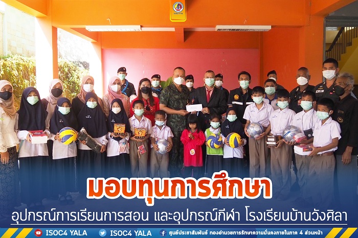 เมื่อวันที่ 1 กันยายน 2565 เวลา 09.00 น. ที่โรงเรียนบ้านวังศิลา ตำบลบ้านแหร อำเภอธารโต จังหวัดยะลา พลตรี ธนัช ฉิมพาลี ผู้บังคับหน่วยเฉพาะกิจยะลา พร้อมคณะฯ ได้เดินทางมามอบทุนการศึกษา, อุปกรณ์การเรียนการสอนรวมทั้งอุปกรณ์กีฬา เพื่อสร้างขวัญและกำลังใจให้กับน้อง ๆ ซึ่งโรงเรียนดังกล่าวเป็นโรงเรียนในพื้นที่ห่างไกล โดยครู นักเรียน และผู้ปกครอง ทั้งไทยพุทธ – ไทยมุสลิม อยู่ร่วมกันได้อย่างสันติสุขรวมทั้งเป็นการส่งเสริมการอยู่ร่วมกันภายใต้สังคมพหุวัฒนธรรมที่เข้มแข็งในพื้นที่ต่อไป
