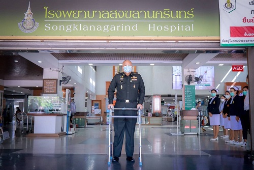 ทั้งนี้ ก่อนเดินทางออกจากโรงพยาบาล พลโท เกรียงไกร ศรีรักษ์ แม่ทัพภาคที่ 4/ผู้อำนวยการรักษาความมั่นคงภายในภาค 4 พร้อมด้วย ดร.คนึงนิตย์ ศรีรักษ์ ประธานสมาคมแม่บ้านทหารบก สาขากองทัพภาคที่ 4 และครอบครัว ได้มอบของที่ระลึกแทนคำขอบคุณทีมคณะแพทย์ พยาบาล เจ้าหน้าที่โรงพยาบาลสงขลานครินทร์ ซึ่งเป็นเสื้อที่มีใจความว่า “แทนคำขอบคุณจากใจแม่ทัพเกรียง” พร้อมกล่าวขอบคุณทีมคณะแพทย์ พยาบาล เจ้าหน้าที่โรงพยาบาลสงขลานครินทร์ ที่คอยดูแลประคับประคองอาการทุกคนอย่างดี “ผมและครอบครัวจะจดจำไว้ในความทรงจำ และจะตอบแทนทางโรงพยาบาลทุกเมื่อที่มีโอกาส โดยตลอดเวลาที่เข้ารับการรักษา ผมเชื่อมั่นเสมอในความสามารถของบุคลากร อุปกรณ์และเทคโนโลยี ทางการแพทย์ของโรงพยาบาลที่มีความทันสมัย ดีใจแทนพี่น้อง 14 จังหวัดภาคใต้ที่มีโรงพยาบาลที่สามารถรองรับ และดูแลประชาชนทุกคนได้เป็นอย่างดี ผมเองยังยึดมั่นกับคำว่า “ลงมือทำคือคำตอบ” เราสามารถเอาบทเรียนจากการลงมือมาวิเคราะห์ ปรับปรุง ต่อยอดการทำงาน ผมเห็นการทำงานของทางโรงพยาบาลที่นี่ ถือเป็นแนวทางการทำงานต่อไปในด้านความเสียสละ เพราะทุกคนที่นี่ทำทุกหน้าที่ด้วยหัวใจที่มีจิตอาสาบริการอย่างแท้จริง” ขณะที่เจ้าหน้าที่บุคลากรทางการแพทย์โรงพยาบาลสงขลานครินทร์ ต่างให้กำลังใจแม่ทัพภาคที่ 4 พร้อมกลับไปปฏิบัติงานรับใช้ประเทศชาติต่อไป