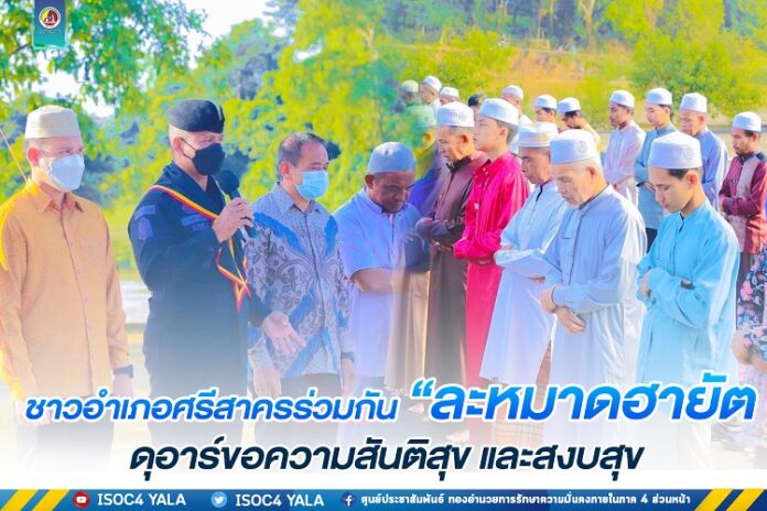 เมื่อวันที่ 2 กันยายน 2565 เวลา 07.00 น. ที่ ใต้สะพานแม่น้ำสายบุรี ตำบลซากอ อำเภอศรีสาคร จังหวัดนราธิวาส พันเอก ศุภชัย สังข์ ผู้บังคับหน่วยเฉพาะกิจกรมทหารพรานที่ 49 ร่วมกิจกรรม “ชาวอำเภอศรีสาครร่วมกันละหมาดฮายัต ขอความสันติสุข และสงบสุข จงมีแด่อำเภอศรีสาคร” เพื่อขอดุอาร์ต่อพระผู้เป็นเจ้า (องค์อัลลอฮ) ให้อำเภอศรีสาครมีแต่ความสงบสุขตลอดไป
