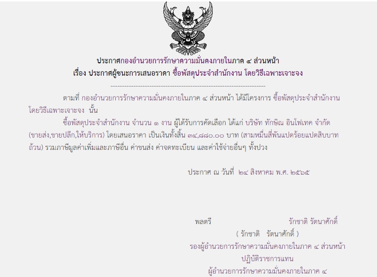 ประกาศผู้ชนะการเสนอราคา ซื้อพัสดุประจำสำนักงาน โดยวิธีเฉพาะเจาะจง ( 34,880.00 บาท )