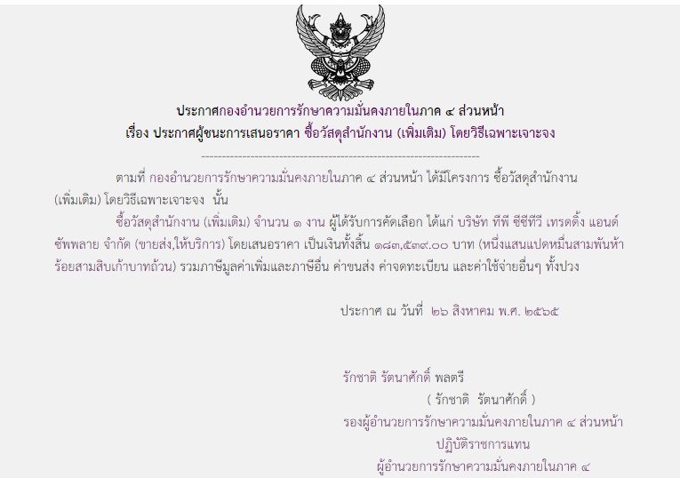 ประกาศผู้ชนะการเสนอราคา ซื้อวัสดุสำนักงาน (เพิ่มเติม) โดยวิธีเฉพาะเจาะจง ( 183,539.00 บาท )