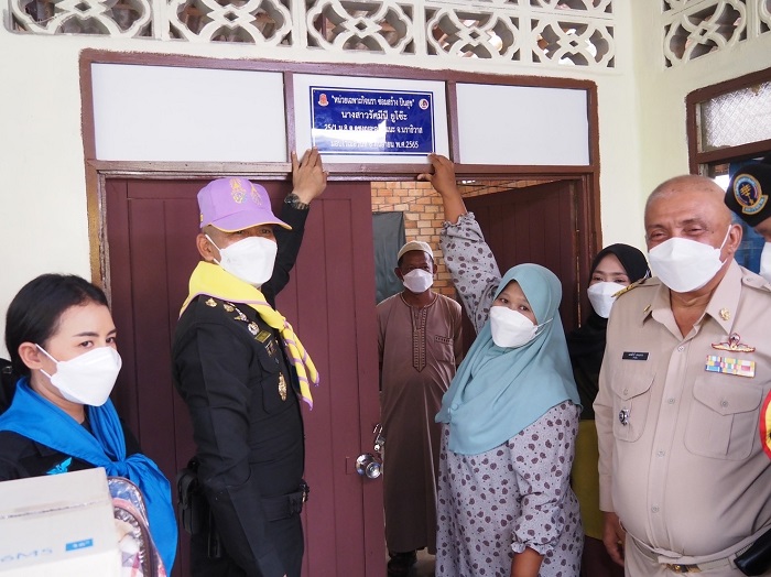 เมื่อวันที่ 6 กันยายน 2565 เวลา 09.30 น. ที่บ้านเลขที่ 67 หมู่ที่ 6 ตำบลรือเสาะ อำเภอรือเสาะ จังหวัดนราธิวาส พลตรี เฉลิมพร ขำเขียว ผู้บัญชาการกองพลทหารราบที่ 15 / ผู้บังคับหน่วยเฉพาะกิจนราธิวาส เป็นประธานในพิธีมอบบ้าน ตามโครงการ “หน่วยเฉพาะกิจนราธิวาส ซ่อมสร้าง ปันสุข” ซึ่งหน่วยเฉพาะกิจกรมทหารพรานที่ 46 ดำเนินงานสร้างบ้านให้กับผู้ยากไร้ และขาดแคลนที่พักอาศัย ในพื้นที่อำเภอรือเสาะ จังหวัดนราธิวาส มีจำนวน 1 หลัง คือบ้านของ นางน้อย ศุภเวช หรือ ป้าน้อย อายุ 60 ปี ซึ่งเป็นสมาชิกของกลุ่มทอผ้า ซึ่งมีความเดือดร้อนในเรื่องที่อยู่อาศัย เนื่องจากหลังคาและผนังบ้านมีสภาพชำรุดทรุดโทรม เมื่อฝนตกลงมาไม่สามารถกันน้ำฝนได้ ซึ่งนางน้อยฯ ผู้ที่ได้รับส่งมอบบ้านดังกล่าว เป็นผู้ยากไร้จริง เป็นคนดี มีจิตสาธารณะ และได้ให้ความร่วมมือกับหน่วยงานราชการเสมอมา จึงได้รับการคัดเลือกให้เป็นบ้านที่หน่วยเข้าดำเนินการสร้างบ้านหลังใหม่ เพื่อเป็นการเยียวยา และบรรเทาความเดือดร้อนให้กับประชาชนในพื้นที่ เสริมสร้าง และยกระดับคุณภาพชีวิตให้ดีขึ้น โดยมี พันเอก สิทธิชัย บำรุงเขต ผู้บังคับหน่วยเฉพาะกิจกรมทหารพรานที่ 46 , นายอำเภอรือเสาะ, ผู้กำกับการสถานีตำรวจภูธรรือเสาะ นายกเทศมนตรีตำบลรือเสาะ หัวส่วนราชการ ผู้นำท้องถิ่น กำนัน ผู้ใหญ่บ้าน อิหม่ามประจำตำบล ตลอดจนประชาชนในพื้นที่ ร่วมให้การต้อนรับ
