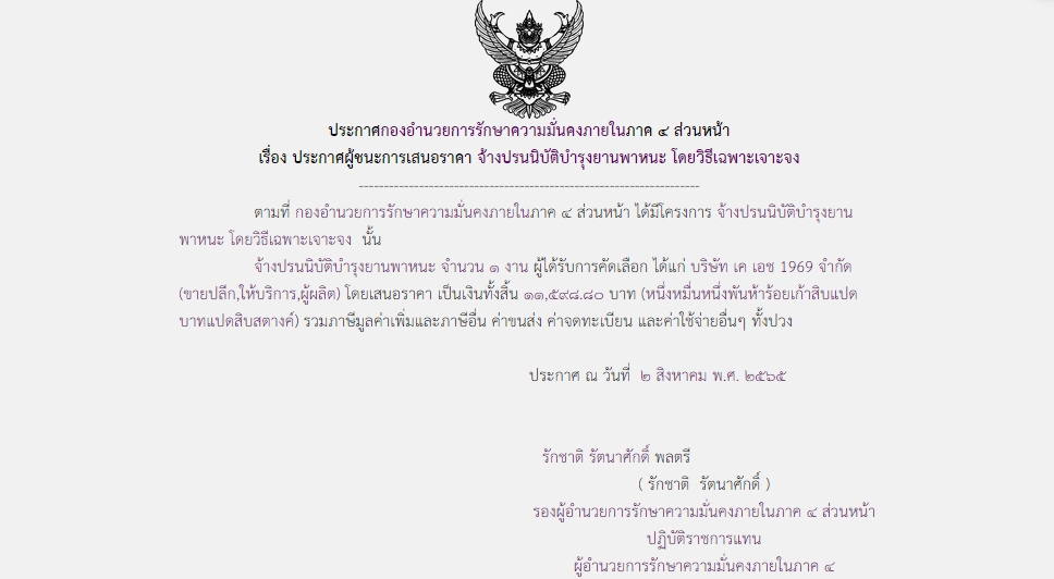 ประกาศผู้ชนะการเสนอราคา จ้างปรนนิบัติบำรุงยานพาหนะ โดยวิธีเฉพาะเจาะจง ( 11,598.80 บาท )