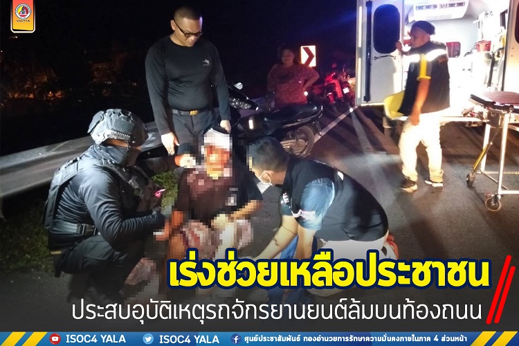 เมื่อวันที่ 6 กันยายน 2565 เวลา 20.00 น. หน่วยเฉพาะกิจกรมทหารพรานที่ 20 ได้รับแจ้งว่ามีประชาชนประสบอุบัติเหตุรถจักรยานยนต์ล้ม บริเวณถนนเรียบคลองชลประทานหมายเลข 3057 บ้านลานควาย หมู่ที่ 5 ตำบลกอลำ อำเภอยะรัง จังหวัดปัตตานี จึงจัดกำลังพลเข้าไปตรวจสอบพื้นที่เกิดเหตุ พร้อมให้ความช่วยเหลือประชาชนที่ประสบอุบัติเหตุ โดยเจ้าหน้าที่ได้ปฐมพยาบาลขั้นต้นให้กับผู้ได้รับบาดเจ็บ และประสานส่วนเจ้าหน้าที่กู้ภัยเพื่อนำผู้ประสบเหตุส่งโรงพยาบาลในพื้นที่เพื่อรักษาต่อไป