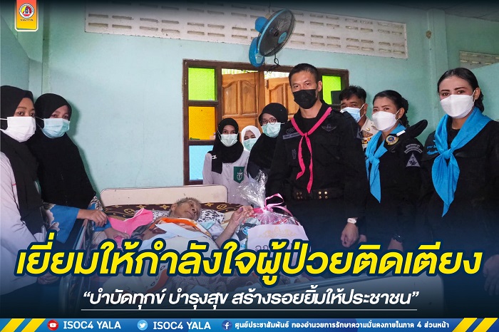 พันโท ธิติพงษ์ หล้าสุพรหม รองผู้บังคับหน่วยเฉพาะกิจกรมทหารพรานที่ 20 พร้อมด้วย ชุดปฏิบัติการเสริมสร้างความเข้าใจหญิง ร่วมกับเจ้าหน้าที่เหล่ากาชาดจังหวัดปัตตานี ลงพื้นที่เยี่ยมเยียนให้กำลังใจผู้ป่วยติดเตียงในพื้นที่ตำบลสะดาวา อำเภอยะรัง จังหวัดปัตตานี ตามโครงการจังหวัดเคลื่อนที่ “บำบัดทุกข์ บำรุงสุข สร้างรอยยิ้มให้ประชาชน” จำนวน 2 ครัวเรือน พร้อมทั้งได้สอบถามปัญหาความเดือดร้อนในการใช้ชีวิตประจำวัน อีกทั้งได้มอบถุงยังชีพ เพื่อบรรเทาความเดือดร้อน สร้างขวัญกำลังใจให้กับประชาชน