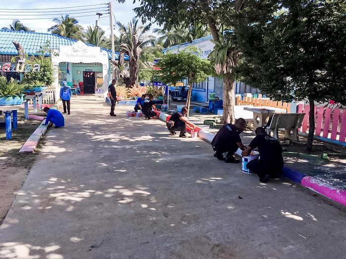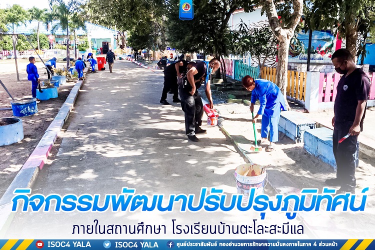 ที่โรงเรียนบ้านตะโละสะมีแล หมู่ที่ 2 บ้านตะโละสะมีแล ตำบลแหลมโพธิ์ อำเภอยะหริ่ง จังหวัดปัตตานี หน่วยเฉพาะกิจกรมทหารพรานที่ 42 จัดกำลังพล ร่วมกับ บุคลากรครู/นักเรียน โรงเรียนบ้านตะโละสะมีแล ร่วมกิจกรรมพัฒนาปรับปรุงภูมิทัศน์ภายในสถานศึกษา การทำความสะอาดเขตสุขาภิบาล เก็บขยะ ทาสี และปรับปรุงภูมิทัศน์ของสถานการศึกษา ให้มีความสะอาด ดูแลความเป็นระเบียบร้อยสวยงามบริเวณโดยรอบของโรงเรียน เพื่อเสริมสร้างความสามัคคี ความร่วมมือ สร้างสัมพันธ์กับสถานศึกษา