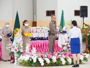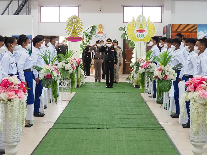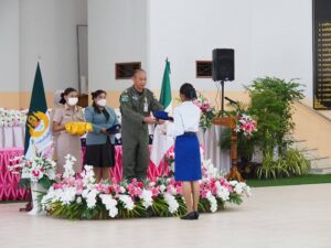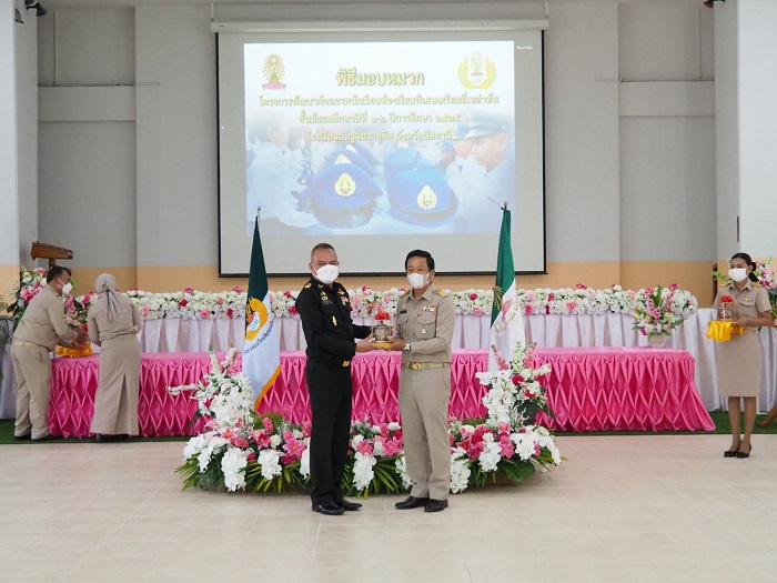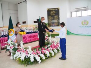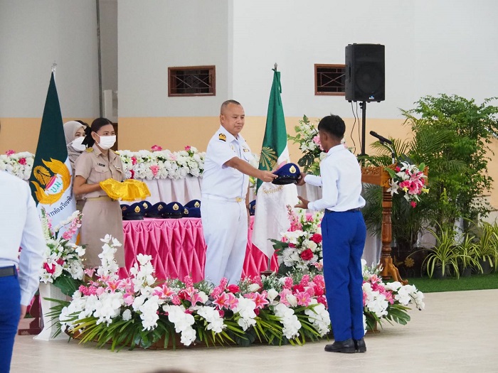 วันนี้ (12 กันยายน 2565) เวลา 09.00 น. ณ หอประชุมโรงเรียนเบญจมราชูทิศ จังหวัดปัตตานี พลตรี คมกฤช รัตนฉายา ผู้บังคับหน่วยเฉพาะกิจปัตตานี ลงพื้นที่ เป็นประธาน ในพิธีมอบหมวกนักเรียนห้องเรียนพิเศษเตรียม 4 เหล่าทัพ ให้แก่นักเรียนที่เข้าร่วมโครงการพัฒนาศักยภาพนักเรียนห้องเรียนพิเศษเตรียม 4 เหล่าทัพ ชั้นมัธยมศึกษาชั้นปีที่ 1 – 6 ประจำปีการศึกษา 2565 โรงเรียนเบญจมราชูทิศ จังหวัดปัตตานี ที่ผ่านการฝึกวิชาทหารเบื้องต้น เพื่อสร้างความตระหนักในการรู้รักสถาบันการศึกษา รวมถึงการแสดงออกถึงความรักชาติ ศาสนา และสถาบันพระมหากษัตริย์ โดยมี ผู้บังคับการตำรวจภูธรจังหวัดปัตตานี ผู้บังคับการกรมทหารราบที่ 3 กองพลนาวิกโยธินค่ายจุฬาภรณ์ ผู้บังคับหน่วยพัฒนาการเคลื่อนที่ 44 ผู้บังคับการกองกำลังทางอากาศเฉพาะกิจที่ 9 ผู้อำนวยการโรงเรียนเบญจมราชูทิศ และผู้ปกครองนักเรียนเตรียม 4 เหล่าทัพ ร่วมในพิธี