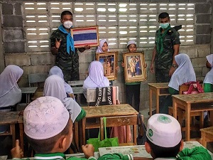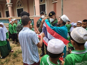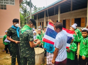 ทั้งนี้ เจ้าหน้าที่ทหารยังได้เปลี่ยนธงชาติผืนใหม่แทนผืนเดิมที่ชำรุดเสียหาย และมอบอุปกรณ์กีฬา (ฟุตบอล) เพื่อใช้ซักซ้อมในการแข่งขันกีฬาตาดีกาสัมพันธ์ต่อไป และเป็นการสร้างความสัมพันธ์อันดีระหว่างเจ้าหน้าที่ทหาร กับ เยาวชนในพื้นที่ สร้างความรักความสามัคคี ให้เกิดขึ้นในชุมชน และท้องถิ่น