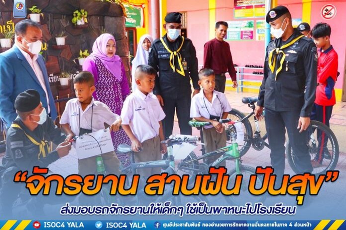 เมื่อวันที่ 13 กันยายน 2565 ที่ โรงเรียนบ้านกาลิซา ตำบลกาลิซา อำเภอระแงะ จังหวัดนราธิวาส พันเอก ทวีรัตน์ เบญจาทิกุล ผู้บังคับหน่วยเฉพาะกิจกรมทหารพรานที่ 45 พร้อมด้วย กองร้อยทหารพรานที่ 4507 เข้าพบปะผู้อำนวยการทางการศึกษา บุคลากรทางการศึกษา โรงเรียนบ้านกาลิซา พร้อมทั้งมอบรถจักรยานที่หน่วยได้ดำเนินการซ่อมแล้วเสร็จ ตามโครงการ “จักรยาน สานฝัน ปันสุข” ให้กับเด็กๆโรงเรียนบ้านกาลิซา เพื่อใช้ในการเดินทางไปเรียนจำนวน 4 คัน