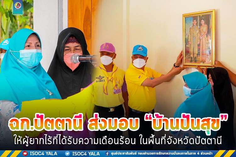 วันนี้ 15 กันยายน 2565 เวลา 09.30 น. ที่บ้านเลขที่ 42 หมู่ที่ 1 ตำบลตะโล๊ะแมะนา อำเภอทุ่งยางแดง จังหวัดปัตตานี หน่วยเฉพาะกิจปัตตานี ดำเนินการจัดโครงการส่งมอบ “บ้านปันสุข” ให้กับพี่น้องประชาชนที่ได้รับความเดือดร้อนด้านที่พักอาศัย รวมถึงยกระดับคุณภาพชีวิตความเป็นอยู่ให้ดียิ่งขึ้นโดยได้ส่งมอบบ้านให้กับ นางลีเมาะ หมะแซ ประชาชนในพื้นที่ตำบลตะโล๊ะแมะนา อำเภอทุ่งยางแดง จังหวัดปัตตานี ซึ่งเป็นผู้ที่ผ่านหลักเกณฑ์การพิจารณาตามโครงการส่งมอบ “บ้านปันสุข” เป็นประชาชนที่ได้รับความเดือดร้อน เป็นผู้ยากไร้ มีจิตอาสา เสียสละ และเป็นที่รักของคนในพื้นที่ ซึ่งได้รับการสนับสนุนงบประมาณจากหน่วยเฉพาะกิจปัตตานี และมอบหมายให้ทางหน่วยเฉพาะกิจ กรมทหารพรานที่ 44 ดำเนินการจัดชุดช่าง ร่วมกับส่วนราชการและพี่น้องประชาชนในพื้นที่ ดำเนินการก่อสร้าง จนทำให้โครงการดังกล่าวสำเร็จลุล่วงไปได้ด้วยดี ซึ่งใช้ระยะเวลาก่อสร้างตั้งแต่วันที่ 18 กรกฎาคม – 8 กันยายน 2565 รวมระยะเวลาก่อสร้างทั้งสิ้น 53 วัน โดยมี พลตรี คมกฤช รัตนฉายา ผู้บังคับหน่วยเฉพาะกิจปัตตานี เป็นประธานในพิธีส่งมอบบ้าน พร้อมด้วย พันเอก ภาคภูมิ จันทรักษ์ ผู้บังคับหน่วยเฉพาะกิจ กรมทหารพรานที่ 44 , หัวหน้าส่วนราชการ, ผู้นำท้องที่ , ผู้นำท้องถิ่น ตลอดจนประชาชนในพื้นที่เข้าร่วมพิธี