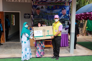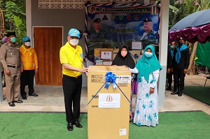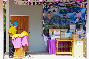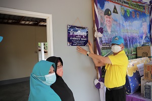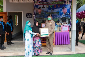 โอกาสนี้ ผู้บังคับหน่วยเฉพาะกิจปัตตานี ประธานในพิธีได้มอบพระบรมฉายาลักษณ์ พระบาทสมเด็จพระเจ้าอยู่หัว และสมเด็จพระนางเจ้าฯ พระบรมราชินี ตลอดจนมอบถุงยังชีพพระราชทาน ชุดเครื่องนอน อุปกรณ์เครื่องใช้ไฟฟ้า และเครื่องอุปโภคบริโภค ที่จำเป็นต่อการดำรงชีวิตประจำวันให้แก่ครอบครัว นางลีเมาะ หมะแซ จากนั้นมอบป้ายเลขที่บ้าน พร้อมทั้งได้พูดคุย ให้กำลังใจกับนางลีเมาะ หมะแซ และครอบครัว ซึ่งหวังว่าบ้านหลังนี้จะทำให้มีคุณภาพชีวิตที่ดีขึ้น เมื่อสังคมช่วยเราแล้ว เราต้องช่วยเหลือสังคม เป็นคนดีของสังคม และจะหลุดพ้นจากวงจรความยากลำบาก ด้านนางซัลมา ยูโซะ ตัวแทน นางลีเมาะ หมะแซ ได้กล่าวขอบคุณประธานในพิธีและหน่วยงานที่เกี่ยวข้อง ที่ร่วมให้การช่วยเหลือสร้างบ้านหลังนี้เสร็จสิ้น รวมทั้งการมอบบ้าน มอบชุดเครื่องนอน และทำให้มีคุณภาพชีวิตที่ดีขึ้น นอกจากได้มอบบ้านแล้ว เสมือนได้มอบชีวิตใหม่ให้กับครอบครัว และมอบความสุขให้อีกด้วย