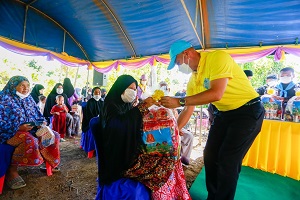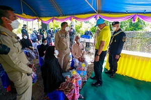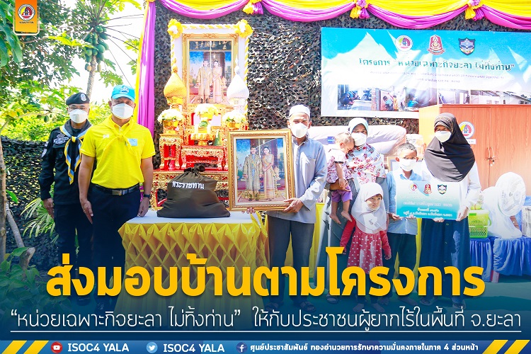 ทั้งนี้ ผู้บังคับหน่วยเฉพาะกิจยะลา ประธานในพิธี ได้มอบพระบรมฉายาลักษณ์ พระบาทสมเด็จพระเจ้าอยู่หัว และสมเด็จพระนางเจ้าฯ พระบรมราชินี และมอบถุงยังชีพพระราชทาน ชุดเครื่องนอน อุปกรณ์เครื่องใช้ไฟฟ้า และเครื่องอุปโภคบริโภค ที่จำเป็นต่อการดำรงชีวิตประจำวันให้แก่ครอบครัว และมอบป้ายเลขที่บ้าน พร้อมทั้งได้พูดคุย ให้กำลังใจแก่นายอับดุลฮาเลม ดอฆอ และครอบครัว และหลังจากมอบบ้านเสร็จเรียบร้อยแล้ว ผู้บังคับหน่วยเฉพาะกิจยะลา ได้มอบถุงยังชีพให้กับประชาชนกลุ่มเปราะบางและผู้ยากไร้ในพื้นที่ จำนวน 10 ราย สร้างขวัญกำลังใจที่ดีแก่ประชาชนในพื้นที่
