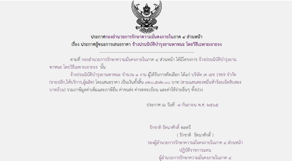 จัดซื้อ จัดจ้างประกาศผู้ชนะการเสนอราคา ประกาศผู้ชนะการเสนอราคา จ้างปรนนิบัติบำรุงยานพาหนะ โดยวิธีเฉพาะเจาะจง September 19, 2022 423 Share Facebook Twitter Google+ Telegram LINE