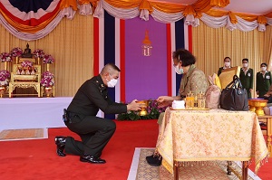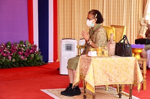 จากนั้น ทอดพระเนตรการดำเนินงานของศูนย์ผลิตภัณฑ์ผ้าบาติก ค่ายสิรินธร ซึ่งมีพระราชดำริให้จัดตั้งขึ้นเมื่อปี 2541 เพื่อเป็นอาชีพเสริมแก่แม่บ้านทหารบกและกำลังพลได้ใช้เวลาว่างให้เกิดประโยชน์ โดยมีผู้ประกอบการโอทอป จังหวัดปัตตานี เข้ามาถ่ายทอดความรู้ด้านการเขียน การพิมพ์ การมัดย้อม และการใช้สีธรรมชาติ ให้กับสมาชิก 20 คน ปัจจุบันลายที่ได้รับความนิยมคือ “ลายขอเจ้าฟ้าสิริวัณณวรีฯ” และลายพื้นเมือง 3 จังหวัดชายแดนภาคใต้ โดยแปรรูปเป็นผลิตภัณฑ์ต่าง ๆ อาทิ เสื้อผ้า ผ้าพันคอ ผ้าคลุมไหล่ กระเป๋า และผ้าถุง ส่งจำหน่ายในร้านสมาคมแม่บ้านทหารบกกรุงเทพมหานคร โอกาสนี้ ทรงลงสีบนลายผ้าบาติก รูปดอกดาหลา ซึ่งอยู่บนภาพร่วมใจ 3 จังหวัดภาคใต้ มีว่าวโบราณ เรือกอและ นกเงือก ดอกชบา ซึ่งเป็นดอกไม้ประจำจังหวัดปัตตานี เพื่อพระราชทานเป็นที่ระลึก