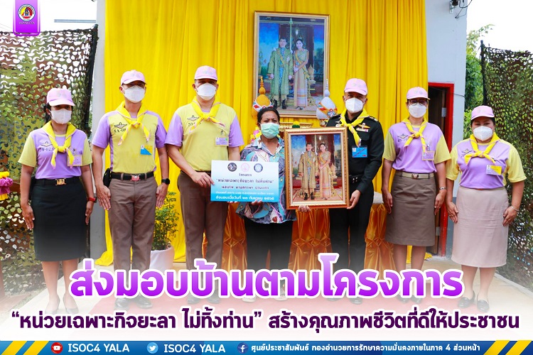 วันนี้ 23 กันยายน 2565 เวลา 10.30 น. ณ บ้านเลขที่ 99/6 หมู่ 12 ตำบลสะเตงนอก อำเภอเมือง จังหวัดยะลา หน่วยเฉพาะกิจตำรวจยะลา 91 จัดกิจกรรมส่งมอบบ้านพักอาศัย ตามโครงการ “หน่วยเฉพาะกิจยะลา ไม่ทิ้งท่าน” ให้กับพี่น้องประชาชนที่ได้รับความเดือดร้อนด้านที่พักอาศัย รวมถึงยกระดับคุณภาพชีวิตความเป็นอยู่ให้ดียิ่งขึ้น โดยมี พลตรี อุทิศ อนันตนานนท์ รองแม่ทัพภาคที่ 4 /หัวหน้าจิตอาสา 904 ภาค 4 เป็นประธานในพิธีส่งมอบบ้านฯ ให้กับ นางสุภาพร ปานแก้ว ประชาชนในพื้นที่ตำบลสะเตง อำเภอเมือง จังหวัดยะลา ซึ่งเป็นผู้ที่ผ่านหลักเกณฑ์การพิจารณาตามโครงการ “หน่วยเฉพาะกิจยะลา ไม่ทิ้งท่าน “เป็นประชาชนที่ได้รับความเดือดร้อน เป็นผู้ยากไร้ มีจิตอาสา เสียสละ และเป็นที่รักของคนในพื้นที่ ซึ่งได้รับการสนับสนุนงบประมาณจากหน่วยเฉพาะกิจยะลาและมอบหมายให้ทางหน่วยเฉพาะกิจตำรวจยะลา 91 ดำเนินการจัดชุดช่าง ร่วมกับส่วนราชการและพี่น้องประชาชนในพื้นที่ โดยมี พลตรี ธนัช ฉิมพาลี ผู้บังคับหน่วยเฉพาะกิจยะลา, พันตำรวจเอก จุฬาชัย แสงกุล ผู้บังคับหน่วยเฉพาะกิจตำรวจยะลา 91,จิตอาสา 904 ยะลา,หัวหน้าส่วนราชการ, ผู้นำท้องที่ ,ผู้นำท้องถิ่น ตลอดจนประชาชนในพื้นที่เข้าร่วมพิธี