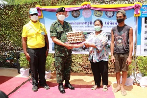 โอกาสนี้ พลตรี อุทิศ อนันตนานนท์ รองแม่ทัพภาคที่ 4 /หัวหน้าจิตอาสา 904 ภาค 4 ประธานในพิธีฯ ได้มอบพระบรมฉายาลักษณ์ พระบาทสมเด็จพระเจ้าอยู่หัว และสมเด็จพระนางเจ้าฯ พระบรมราชินี ตลอดจนมอบถุงยังชีพพระราชทาน ชุดเครื่องนอน อุปกรณ์เครื่องใช้ไฟฟ้า และเครื่องอุปโภคบริโภค ที่จำเป็นต่อการดำรงชีวิตประจำวันให้แก่ครอบครัว นางสุภาพร ปานแก้ว จากนั้นมอบป้ายเลขที่บ้าน พร้อมทั้งได้พูดคุย ให้กำลังใจกับนางสุภาพร ปานแก้ว และครอบครัว ซึ่งหวังอย่างยิ่งว่าบ้านหลังนี้จะทำให้มีคุณภาพชีวิตที่ดีขึ้น และเป็นคนดีช่วยเหลือสังคมเพื่อให้หลุดพ้นจากวงจรความยากลำบากให้ได้