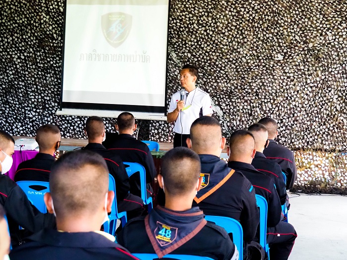 โดยการฝึกภาควิชากายภาพบำบัด “นวด ดัด จัดสรีระ” ให้กับกำลังพลหน่วยเฉพาะกิจกรมทหารพรานที่ 48 ในครั้งนี้จัดขึ้นเนื่องจาก พันเอก เอกพล เลขนอก ผู้บังคับหน่วยเฉพาะกิจกรมทหารพรานที่ 48 ได้เล็งเห็นถึงปัญหาด้านสุขภาพ จากการปฏิบัติหน้าที่ในแต่ละวันของกำลังพล ซึ่งอาจทำให้ร่างกายเกิดความเหนื่อยล้า รวมทั้งอาจเกิดความเครียดที่สะสมจากสภาวะต่างๆ โดยไม่รู้ตัว จึงขอรับการสนับสนุนวิทยากรให้ความรู้ จากวิสาหกิจสุขภาพชุมชน ‘SHE (Social Health Enterprise)’ ซึ่งเป็นวิสาหกิจ เพื่อชุมชนเป็นการ “นวด ดัด จัดสรีระ” ด้วยการยืดกล้ามเนื้อข้อต่อตามหลักวิทยาศาสตร์การกีฬาที่ผสานการยืดเหยียดและกดจุดคลายกล้ามเนื้อ แก้อาการปวดเมื่อยภายใน 10 นาที โดยให้กำลังพลได้เรียนรู้จากการสาธิต ก่อนการปฏิบัติจริง