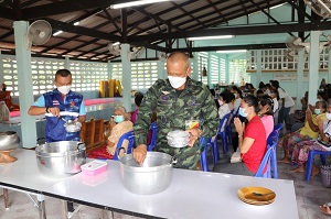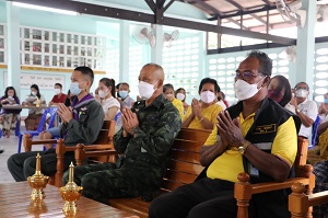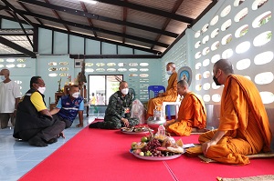 ทั้งนี้ พลตรี เฉลิมพร ขำเขียว ได้พบปะพี่น้องประชาชนไทยพุทธ สอบถามความเป็นอยู่ ในการดำเนินชีวิต พร้อมทั้งติดตามความคืบหน้า การเตรียมการจัดงานกฐินพระราชทาน ซึ่งจะขึ้นในห้วงวันที่ 15 – 16 ตุลาคม 2565 ที่กำลังจะถึงนี้ ตลอดจน การพัฒนาทำความสะอาด และทาสีกำแพงวัด โดยได้มอบงบประมาณ จำนวน 30,000 บาท เพื่อสนับสนุนการจัดซื้อสีทากำแพงวัด ตามโครงการดูแลชุมชนไทยพุทธ ของศูนย์ประสานงานโครงการอันเนื่องมาจากพระราชดำริ มี 3 โครงการ ประกอบด้วย โครงการฟื้นฟูไทยพุทธเสริมสร้าง เพื่อเข้าไปดูแล ส่งเสริม สนับสนุนขั้นต้น ให้แก่ ประชาชนในพื้นที่ในการประกอบอาชีพทางการเกษตร และการเลี้ยงสัตว์ โดยบูรณาการร่วมกับหน่วยงานราชการในพื้นที่ ลงพื้นที่สอบถามความต้องการในการประกอบอาชีพเพิ่มเติม ทั้งด้านการเกษตร การเลี้ยงสัตว์ และความต้องการอื่นๆ ของพี่น้องประชาชนในชุมชนไทยพุทธ ในพื้นที่ จังหวัดชายแดนภาคใต้ เพื่อให้มีคุณภาพชีวิตที่ดีขึ้น สร้างความเชื่อมั่นเกิดความรู้สึกปลอดภัยในพื้นที่ สร้างเข้มแข็งขึ้นในชุมชน เกิดสำนึกรักถิ่นฐานบ้านเกิด ช่วยให้ประชาชนในพื้นที่ไม่ละทิ้งถิ่นฐาน โครงการพัฒนาศาสนสถาน เพื่อการบูรณปฏิสังขรณ์ ซ่อมแซม วัด สำนักสงฆ์ และที่พักสงฆ์ ที่ชำรุดทรุดโทรมให้มีสภาพมั่นคงแข็งแรงเพื่อใช้ในการปฎิบัติศาสนพิธีได้ และโครงการสนับสนุนภัตตาหารแด่พระสงฆ์ในพื้นที่ชุมชนล่อแหลม เสี่ยงภัยไม่สามารถออกบิณฑบาตได้ เพื่อแก้ปัญหาความเดือดร้อนของพระสงฆ์ที่อยู่ในพื้นที่ล่อแหลม เสี่ยงภัย ให้มีภัตตาหารที่เพียงพอ สามารถปฏิบัติศาสนกิจได้ และไม่ละทิ้งวัด