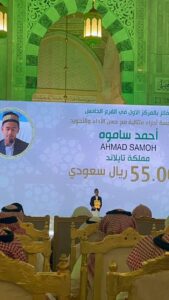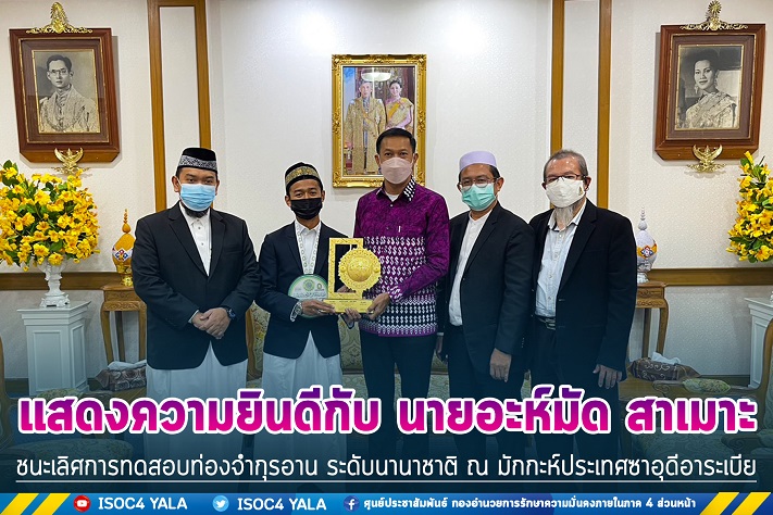 รองผู้ว่าราชการจังหวัดปัตตานี กล่าวแสดงความยินดีกับน้องอะห์มัด สาเมาะ ที่เป็นตัวแทนของประเทศไทยสามารถไปคว้ารางวัลชนะเลิศ และขอบคุณพ่อที่ผลักดัน รวมทั้งพี่ชายทั้ง 2 คน ที่เป็นแบบอย่างในการเข้าแข่งขันจนได้รับรางวัลชนะเลิศจากประเทศซูดาน และประเทศแคนนาดา หลังจากนี้ไป อยากให้น้องอะห์มัด สาเมาะ ได้เป็นแบบอย่างให้แก่เยาวชนคนรุ่นหลัง และขอเป็นกำลังใจในการที่จะไปประกวดในเวทีต่อจากนี้ก็ขอให้ได้รับรางวัลชนะเลิศต่อไป