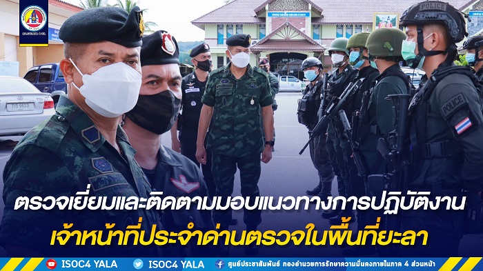 วันนี้ 8 ตุลาคม 2565 กองอำนวยการรักษาความมั่นคงภายในภาค 4 ส่วนหน้า เดินหน้ามุ่งสร้างความปลอดภัยในชีวิตและทรัพย์สิน ควบคู่กับการป้องกันและปราบปรามยาเสพติดอย่างต่อเนื่อง นับเป็นเรื่องสำคัญที่ต้องควบคุมกำกับดูแลอย่างใกล้ชิด เพื่อสร้างความมั่นใจให้แก่ประชาชนในพื้นที่จังหวัดชายแดนภาคใต้โดย พลตรี ไพศาล หนูสังข์ รองแม่ทัพภาคที่ 4/ รองผู้อำนวยการรักษาความมั่นคงภายในภาค 4 ส่วนหน้า และคณะ ลงพื้นที่ตรวจเยี่ยม และมอบแนวทางการปฎิบัติงานแก่เจ้าหน้าที่ประจำด่านตรวจในพื้นที่ อำเภอเมือง จังหวัดยะลา ได้แก่ ด่านตรวจขุนไวย์ เขตตลาดเก่า รอยต่อ ยะลา – ปัตตานี ,ด่านตรวจโพธิ์ทอง ตำบลสะเตงนอก , ด่านตรวจมลายูบางกอก และด่านตรวจท่าสาป อำเภอเมือง จังหวัดยะลา เพื่อตรวจเยี่ยมการปฏิบัติงาน พร้อมพูดคุย สอบถามปัญหาข้อขัดข้อง ตลอดจนรับฟังข้อเสนอแนะ และมอบนโยบายในการปฏิบัติงานแก่เจ้าหน้าที่