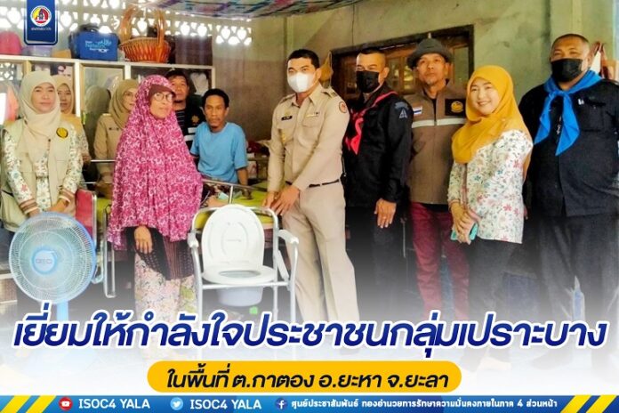 เมื่อวันที่ 10 ตุลาคม 2565 เวลา 10.30 น. ที่บ้านเลขที่ 51 หมู่ที่ 3 ตำบลกาตอง อำเภอยะหา จังหวัดยะลา หน่วยเฉพาะกิจกรมทหารพรานที่ 47 จัดกำลังพลของหน่วย ฯ ชุดปฏิบัติการเสริมสร้างความเข้าใจ ร่วมกับ ปลัดประจำตำบลกาตอง, ผู้นำท้องที่, ผู้นำท้องถิ่น และชุดบัณฑิตอาสาฯ ในพื้นที่ เดินทางเข้าพบปะเยี่ยมเยียน และให้กำลังใจ นาย นิแม วอเด็ง ซึ่งเป็นประชาชนกลุ่มเปราะบาง (ผู้ป่วยติดเตียง) ทั้งนี้ได้สอบถามความเป็นอยู่ในการดำเนินชีวิตประจำวัน และปัญหาข้อขัดข้องต่างๆ เพื่อร่วมกันหาวิธีแก้ไขในเบื้องต้น รวมทั้งได้มอบอุปกรณ์อำนวยความสะดวก (เครื่องสุขภัณฑ์) ให้กับประชาชนกลุ่มดังกล่าว เป็นการบรรเทาความเดือดร้อนในการดำเนินชีวิตประจำวัน และยังสร้างขวัญกำลังใจที่ดีแก่ผู้ป่วย และครอบครัวเป็นอย่างมาก