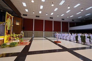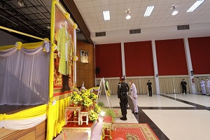 ต่อมา พลโท ศานติ ศกุนตนาค แม่ทัพภาคที่ 4 ได้วางพวงมาลาเบื้องหน้าพระบรมฉายาลักษณ์ นำผู้ร่วมพิธีกล่าวน้อมรำลึกในพระมหากรุณาธิคุณ ที่ทรงปฏิบัติพระราชกรณีกิจนานัปการ เป็นที่ประจักษ์แก่ข้าปวงชนชาวไทยทุกหมู่เหล่า ก่อนเป็นประธานในพิธีสวดพระพุทธมนต์ถวายเป็นพระราชกุศลตามลำดับ โดยมีข้าราชการ หน่วยงานภายในค่ายวชิราวุธ กำลังพลหน่วยขึ้นตรงกองทัพภาคที่ 4 สมาคมแม่บ้านทหารบกสาขากองทัพภาคที่ 4 เข้าร่วมพิธีอย่างพร้อมเพรียง
