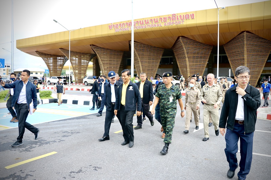 วันนี้ (11 กันยายน 2563) เวลา 09.30 น. ที่ ห้องประชุมท่าอากาศยานเบตง อำเภอเบตง จังหวัดยะลา นายถาวร เสนเนียม รัฐมนตรีช่วยว่าการกระทรวงคมนาคม และคณะฯ ลงพื้นที่อำเภอเบตง เพื่อร่วมประชุมติดตามการเตรียมความพร้อมการเปิดใช้งานท่าอากาศยานเบตง พร้อมเยี่ยมชมบริเวณภายในอาคารที่พักผู้โดยสาร และบริเวณลานจอดของท่าอากาศยานเบตง โดยมี พลเรือตรี สมเกียรติ ผลประยูร เลขาธิการ ศอ.บต. นายชัยสิทธิ์ พานิชพงศ์ ผู้ว่าราชการจังหวัดยะลา พลตรี ปราโมทย์ พรหมอินทร์ เสนาธิการกองทัพภาคที่ 4 นางดวงพร สุวรรณมณี ผู้อำนวยการท่าอากาศยานเบตง ตลอดจน คณะผู้บริหาร กรมทอากาศยาน บริษัท วิทยุการบินแห่งประเทศไทย จำกัด และส่วนราชการทั้งภาครัฐ ภาคเอกชนในพื้นที่เข้าร่วม