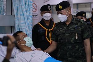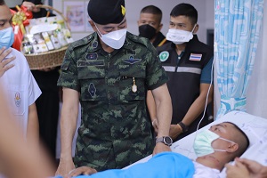วันนี้ (22 ตุลาคม 2565) เวลา 17.00 น. ณ โรงพยาบาลนราธิวาสราชนครินทร์ อำเภอเมือง จังหวัดนราธิวาส พลโท ศานติ ศกุนตนาค แม่ทัพภาคที่ 4 / ผู้อำนวยการรักษาความมั่นคงภายในภาค 4 เดินทางเยี่ยมอาการบาดเจ็บของ จ่าสิบเอก ประเสริฐ โกมุทกลาง, อส.ทพ.เกียรติศักดิ์ บำเพิงพล, อส.ทพ.ทวีชัย หอมอุทัย, อส.ทพ.อัสนาวี ยอดแก้ว และ อส.ทพ.วัชรินทร์ สิทธิน้อย กำลังพลหน่วยเฉพาะกิจกรมทหารพรานที่ 49 ซึ่งได้รับบาดเจ็บจากเหตุ คนร้ายลอบวางระเบิดชุดปฏิบัติการกองร้อยทหารพรานที่ 4905 หน่วยเฉพาะกิจกรมทหารพรานที่ 49 บริเวณคอสะพานข้ามแม่น้ำสายบุรี บ้านไอร์ซือเร๊ะ หมู่ที่ 3 ตำบลช้างเผือก อำเภอจะแนะ จังหวัดนราธิวาส ขณะกลับจากภารกิจ และนำกำลังพลที่เจ็บป่วยไปส่งยังโรงพยาบาลจะแนะ แรงระเบิดทำให้รถยนต์กระบะได้รับความเสียหาย และมีกำลังพลได้รับบาดเจ็บจำนวน 5 นาย เมื่อวันที่ 21 ตุลาคม 2565 ที่ผ่านมา