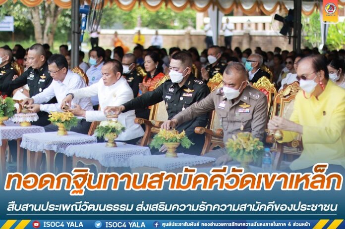 เมื่อวันที่ (24 ตุลาคม 2565) เวลา 12.30 น. ณ วัดเขาเหล็ก หมู่ที่ 2 ตำบลนบพิตำ อำเภอนบพิตำ จังหวัดนครศรีธรรมราช พลโท ศานติ ศกุนตนาค แม่ทัพภาคที่ 4 / ผู้อำนวยการรักษาความมั่นคงภายในภาค 4 เป็นประธานในพิธีถวายผ้ากฐินทานสามัคคี อนุรักษ์สืบสานประเพณีวัฒนธรรมอันดีงาม ส่งเสริมความรักความสามัคคีของประชาชนในพื้นที่ ตลอดจนนำจตุปัจจัยที่ได้ไปบูรณะปฏิสังขรณ์เสนาสนะที่ชำรุดทรุดโทรม โดยมี พระครูภัทธรรมาภรณ์ เจ้าอาวาสวัดเขาเหล็ก เป็นประธานฝ่ายสงฆ์, พลตำรวจโท นันทเดช ย้อยนวล ผู้บัญชาการตำรวจภูธรภาค 9, คณะผู้บังคับบัญชา, ผู้บังคับหน่วยขึ้นตรงกองทัพภาคที่ 4 ส่วนราชการ และพุทธศาสนิกชนในพื้นที่ร่วมอย่างพร้อมเพรียง