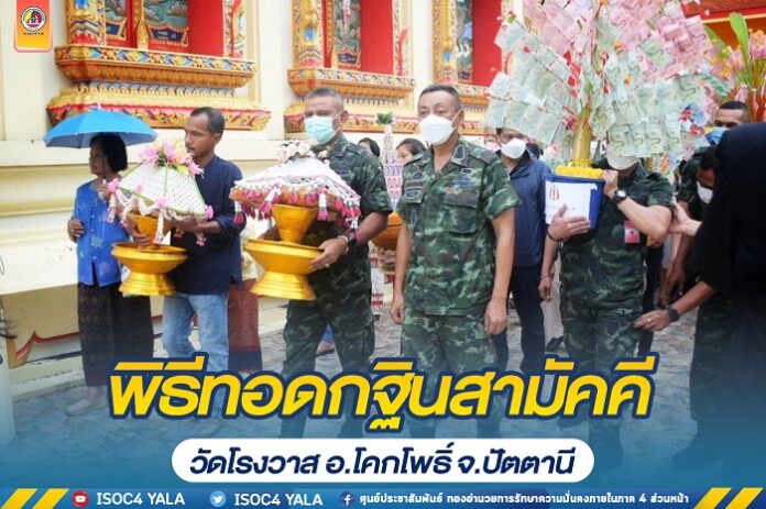 ที่ วัดโรงวาส บ้านท่าเรือ ตำบลท่าเรือ อำเภอโคกโพธิ์ จังหวัดปัตตานี พลตรี ขจรศักดิ์ อินทร์ทอง ผู้บังคับหน่วยเฉพาะกิจปัตตานี พร้อมด้วย กำลังพล หน่วยเฉพาะกิจปัตตานี ร่วมเป็นเจ้าภาพในพิธีทอดกฐินสามัคคีและทอดผ้าป่าวัดโรงวาส ประจำปี 2565 เพื่อหารายได้ร่วมสมทบทุนในการทำนุบำรุงพระพุทธศาสนา โดยมีประชาชนในพื้นที่เข้าร่วมเป็นจำนวนมาก