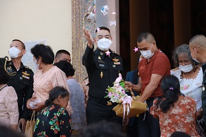 ในโอกาสนี้ พลโท ศานติ ศกุนตนาค แม่ทัพภาคที่ 4 / ผู้อำนวยการรักษาความมั่นคงภายในภาค 4 ได้พบปะพูดคุยกับพุทธศาสนิกชนที่มาเข้าร่วมพิธี จากนั้นร่วมโปรยทานกฐินให้กับพุทธศาสนิกชนที่มาร่วมรับบุญกันถ้วนหน้าเพื่อร่วมกันอนุรักษ์สืบสานประเพณีวัฒนธรรมอันดีงาม ส่งเสริมความรักความสามัคคีของประชาชนในพื้นที่