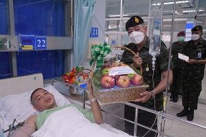 โดยแม่ทัพภาคที่ 4 ได้พูดคุย สอบถามอาการ และเหตุการณ์ที่เกิดขึ้น นำความห่วงใย จาก พลเอก ณรงค์พันธ์ จิตต์แก้วแท้ ผู้บัญชาการทหารบกมายังกำลังพล และครอบครัว กล่าวขอบคุณ และชื่นชมความมีสติต่อการปฏิบัติงาน ขอให้มีขวัญ และกำลังใจที่ดีกลับมาปฏิบัติหน้าที่ ยืนยันกับครอบครัวว่ากองทัพภาคที่ 4 จะดูแลกำลังพลอย่างดีที่สุด พร้อมกันนี้ได้มอบกระเช้าเยี่ยม และเงินช่วยเหลือเยียวยาเบื้องต้นให้กับกำลังพลอีกด้วย