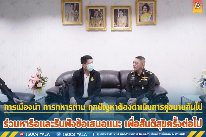 เมื่อวันที่ 30 ตุลาคม 2565 ที่ อำเภอหาดใหญ่ จังหวัดสงขลา พลเอก วัลลภ รักเสนาะ หัวหน้าคณะพูดคุยเพื่อสันติสุขจังหวัดชายแดนภาคใต้ นำคณะพูดคุยเพื่อสันติสุขฯ พบปะหารือให้คำแนะนำและแลกเปลี่ยนความคิดเห็นร่วมกับ พลโท ศานติ ศกุนตนาค แม่ทัพภาคที่ 4 / ผู้อำนวยการรักษาความมั่นคงภายในภาค 4 ตลอดจนแนะนำคณะทำงานของกันและกันในฐานะองค์กรหลักในการปฏิบัติภารกิจในพื้นที่ เพื่อช่วยกันขับเคลื่อนกลไกพัฒนาจังหวัดชายแดนภาคใต้ ประสานความร่วมมือกับกองอำนวยการรักษาความมั่นคงภายในภาค 4 ส่วนหน้า ในเรื่องของการทำงานการพูดคุยเพื่อสันติสุขให้เกิดความต่อเนื่อง และการพูดคุยในครั้งต่อไปน่าจะเกิดขึ้นภายหลังจากการเลือกตั้งของมาเลเซียไปแล้ว ทั้งนี้ คณะพูดคุยเพื่อสันติสุขจังหวัดชายแดนภาคใต้จะมีแผนในการพุดคุยครั้งต่อไปให้เร็วที่สุด จากการประชุมครั้งที่ 5 ได้มีการเสนอในเรื่องของการลดความรุนแรงซึ่งจะนำมาหารือต่อไป และหลังจากมีการเปิดเวทีพูดคุยอีกครั้งจะลงพื้นที่เพื่อชี้แจงแถลงความคืบหน้าให้ทุกฝ่ายได้รับรู้