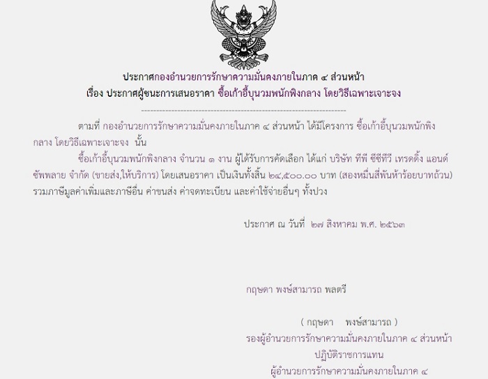 จัดซื้อ จัดจ้างประกาศผู้ชนะการเสนอราคา ประกาศผู้ชนะการเสนอราคา ซื้อเก้าอี้นวมพนักพิงกลาง โดยวิธีเฉพาะเจาะจง (24,500.00) September 13, 2020 956 Share Facebook Twitter Google+ Telegram LINE สบป.กอ.รมน.ภาค 4 สน.