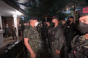 ทั้งนี้การทำงานของเจ้าหน้าที่กำลังทั้ง 3 ฝ่าย ให้ยึดหลักยุทธศาสตร์ประชาชนมีส่วนร่วมบูรณาการกำลังทุกภาคส่วน ทหาร ตำรวจ พลเรือน และฝ่ายปกครอง ช่วยกันแก้ไขปัญหาในพื้นที่ เป็นหูเป็นตา แจ้งเบาะแส สิ่งต้องสงสัย ทำพื้นที่ให้เกิดความปลอดภัย ให้พี่น้องประชาชนมั่นใจได้ว่าทางเจ้าหน้าที่ จะดูแลความปลอดภัยของพี่น้องประชาชน ในพื้นที่จังหวัดชายแดนภาคใต้ได้อย่างสุดกำลังความสามารถ เพื่อทำพื้นที่ให้ปลอดเหตุ ประชาชนมีความปลอดภัยสูงสุด สร้างความอุ่นใจให้กับพี่น้องประชาชนในประเพณีแห่งความสุขอีกด้วย