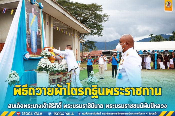 ทั้งนี้ พิธีถวายผ้าไตรกฐินพระราชทาน สมเด็จพระนางเจ้าสิริกิติ์ พระบรมราชินีนาถ พระบรมราชชนนีพันปีหลวง ประจำปี 2565 ในพื้นที่จังหวัดชายแดนภาคใต้ ทางศูนย์ประสานงานโครงการอันเนื่องมาจากพระราชดำริ กองอำนวยการรักษาความมั่นคงภายในภาค 4 ส่วนหน้า ได้ขอรับพระราชทานผ่านราชเลขานุการในพระองค์ เพื่อนำมาทอดถวายแด่พระสงฆ์ที่จำพรรษาครบถ้วนไตรมาส ณ วัดในพื้นที่จังหวัดชายแดนภาคใต้ จำนวน 4 วัด ประกอบด้วย วัดเกษมประทีป ตำบลเกาะสะท้อน อำเภอตากใบ จังหวัดนราธิวาส ,วัดมาลีนิเวศน์ ตำบลมายอ อำเภอมายอ จังหวัดปัตตานี, วัดโตนด ตำบลบ้านโหนด อำเภอสะบ้าย้อย จังหวัดสงขลา และวัดเฉลิมนิคม ตำบลลำใหม่ อำเภอเมือง จังหวัดยะลา