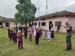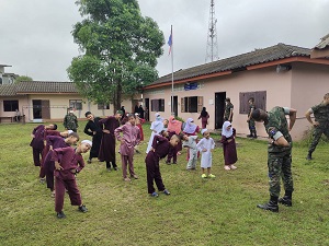 เมื่อวันที่ 5 พฤศจิกายน 2565 เวลา 08.00 น. ที่ ศูนย์ศึกษาอิสลามประจำมัสยิด (ตาดีกา) ดารุลซุนนะห์ บ้านโคกขี้เหล็ก หมู่ที่ 7 ตำบลโคกเคียน อำเภอเมือง จังหวัดนราธิวาส ร้อยปืนเล็กที่ 1 หน่วยเฉพาะกิจนาวิกโยธิน กองทัพเรือ 33 พร้อมด้วย ชุดปฏิบัติการกิจการพลเรือน และเจ้าหน้าที่พยาบาล ลงพื้นที่เข้าพบปะเยียมเยียน พูดคุยให้กำลังใจ และร่วมทำกิจกรรมออกกำลังกายยามเช้าร่วมกับครูและนักเรียน เพื่อเสริมสร้างสุขภาพร่างกายให้แข็งแรง พร้อมกันนี้ได้มอบขนมให้กับครูและนักเรียน สร้างความสัมพันธ์อันดีต่อกัน และสร้างรอยยิ้ม ความประทับใจให้กับครูและนักเรียนเป็นอย่างมาก