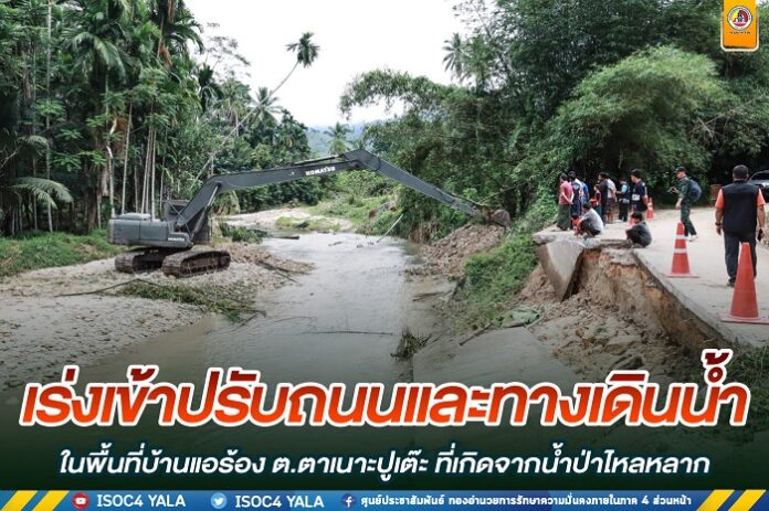 ล่าสุด วันนี้ (6 พฤศจิกายน 2565) เวลา 10.00 น. พันโท ศุภฤกษ์ ชื่นจิต ผู้บังคับกองพันทหารช่างที่ 15 กองพลทหารราบที่ 15 พร้อมด้วย พันโท คณิน พรมมาวัน ผู้บังคับกองพันทหาราบที่ 1 กรมทหารราบที่ 152 นำกำลังพลและชุดเครื่องมือหนักเข้ามาสนับสนุนดำเนินการปรับทางเดินน้ำ เพื่อพื้นฟูพื้นที่ได้รับผลกระทบถนนเส้นทางเข้าพื้นที่หมู่ 10 บ้านแอร้อง ตำบลตาเนาะปูเต๊ะ เพื่อลดผลกระทบจากเส้นทางน้ำไหลหลาก โดยมี รองนายกองค์การบริหารส่วนตำบลตาเนาะปูเต๊ะ ,กำนัน,ผู้ใหญ่บ้าน,ผู้นำท้องที่และประชาชนคอยให้ความช่วยเหลือ