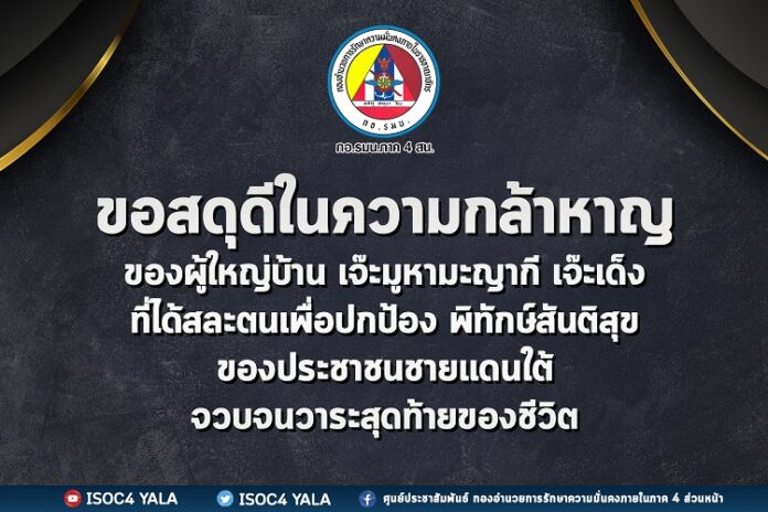 ประชาสัมพันธ์ข่าวประชาสัมพันธ์ ขอสดุดีในความกล้าหาญ ของผู้ใหญ่บ้าน เจ๊ะมูหามะญากี เจ๊ะเด็ง ที่ได้สละตนเพื่อปกป้อง พิทักษ์สันติสุข ของประชาชนชายแดนใต้ จวบจนวาระสุดท้ายของชีวิต November 9, 2022 554 Share Facebook Twitter Google+ Telegram LINE ผู้ใหญ่บ้านใจกล้า ศูนย์ประชาสัมพันธ์กองอำนวยการรักษาความมั่นคงภายในภาค4ส่วนหน้า