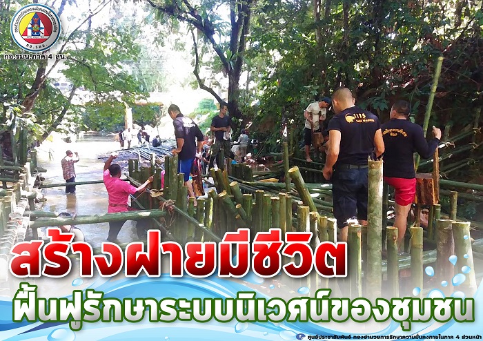ชุดปฏิบัติการกิจการพลเรือน หน่วยเฉพาะกิจกรมทหารพรานที่ 11 ร่วมกับ ผู้นำหมู่บ้าน ผู้นำชุมชน และชาวบ้านในพื้นที่ ทำการสร้างฝายมีชีวิต ภูมิปัญญาและนวัตกรรม ช่วยแก้ปัญหาภัยแล้งน้ำท่วมและฟื้นฟูรักษาระบบนิเวศน์ของชุมชน ตาม”โครงการสร้างฝายมีชีวิต เป็นการยกระดับน้ำเพื่อแก้ปัญหาภัยแล้งซ้ำซาก และชะลอน้ำมิให้กระแสน้ำไหลหลาก ลดความรุนแรงของการกัดเซาะ พร้อมทั้งเป็นการเสริมสร้างความเข้าใจในการปฏิบัติงานและนำไปสู่ความไว้วางใจสร้างความเชื่อมั่นระหว่างประชาชนกับเจ้าหน้าที่ทหารพราน