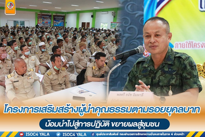 พลตรี ธนัช ฉิมพาลี ผู้บังคับหน่วยเฉพาะกิจยะลา กล่าวว่า โครงการเสริมสร้างผู้นำคุณธรรมตามรอยยุคลบาท เพื่อเป็นการศึกษาเรียนรู้หลักปรัชญาของเศรษฐกิจพอเพียง ใช้เป็นแนวทางการดำรงชีวิตและวิถีปฏิบัติที่พระบาทสมเด็จพระบรมชนกาธิเบศร มหาภูมิพลอดุลยเดชมหาราช บรมนาถบพิตร รัชกาลที่ 9 ได้ทรงเน้นย้ำแนวทางการพัฒนาที่ตั้งอยู่บนพื้นฐานของทางสายกลางและความไม่ประมาท โดยคำนึงถึงความพอประมาณ ความมีเหตุผล การสร้างภูมิคุ้มกันในตัว ตลอดจนใช้ความรู้ และคุณธรรมเป็นพื้นฐาน ในการดำเนินชีวิตป้องกันให้รอดพ้นจากวิกฤติและให้สามารถดำรงอยู่ได้อย่างมั่นคงและยั่งยืน ภายใต้กระแสโลกาภิวัฒน์ และความเปลี่ยนแปลงต่างๆ สามารถปฏิบัติตนและเสริมสร้างจิตสำนึกในการเทิดทูนสถาบันพระมหากษัตริย์ ซึ่งผู้นำในระดับหมู่บ้านมีความจำเป็นอย่างยิ่ง ที่จะต้องเรียนรู้แนวทางการดำเนินชีวิตและวิถีปฏิบัติตามแนวทางข้างต้น เพื่อนำไปขยายผลสู่ชุมชนและเป็นผู้นำที่ดีและเป็นพลังของแผ่นดินสืบไป