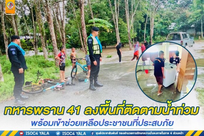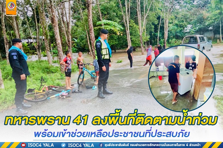 เมื่อวันที่ 11 พฤศจิกายน 2565 หน่วยเฉพาะกิจกรมทหารพรานที่ 41 จัดกำลังพลชุดปฏิบัติการเสริมสร้างความเข้าใจ ออกสำรวจระดับน้ำ ในพื้นที่ อำเภอรามัน จังหวัดยะลา เนื่องจากในห้วงนี้มีฝนตกอย่างต่อเนื่อง เพื่อตรวจสอบระดับน้ำในพื้นที่ราบลุ่ม พื้นที่เสี่ยงจากอุทกภัยที่เคยประสบปัญหาน้ำท่วมขัง และได้รับทราบข้อมูลปัญหาข้อขัดข้องจากประชาชน เพื่อหาแนวทางในการช่วยเหลืออย่างทันท่วงทีต่อไป