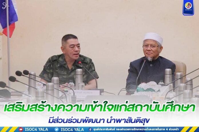 โดยแม่ทัพภาคที่ 4 กล่าวว่า “มหาวิทยาลัยนำความพัฒนาจนทำให้ชุมชนในพื้นที่เกิดความเจริญ การพบปะครั้งนี้ขอแนะนำตัวพร้อมกับคณะทำงาน เพื่อสร้างความร่วมมือให้เกิดขึ้น พร้อมรับฟังทุกข้อเสนอทุกเรื่องที่เป็นประโยชน์ในการจะทำให้พื้นที่เกิดความสงบสุข ภูมิใจกับน้อง ๆ เยาวชน นิสิตนักศึกษาที่ได้ผ่านการอบรมศึกษาที่นี่ และไปเป็นบุคลากรที่ดีตอบแทนประเทศชาติบ้านเมือง นำความก้าวหน้าด้านวิชาการ ต่อยอดสร้างความเจริญก้าวหน้าให้กับประเทศ”