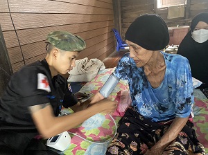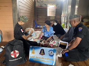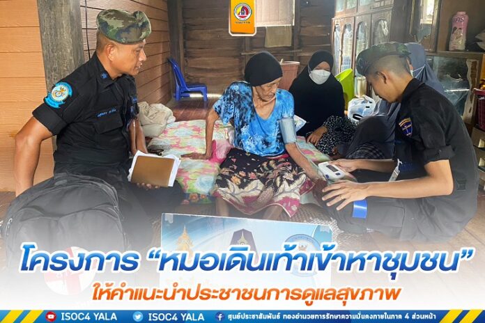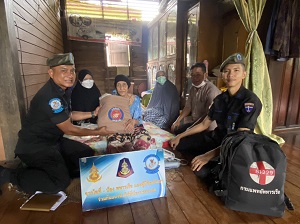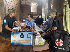 เมื่อวันที่ 13 พฤศจิกายน 2565 เวลา 11.00 น. หน่วยเฉพาะกิจนาวิกโยธิน กองทัพเรือ จัดกำลังพล ชุดปฏิบัติการสาธารณสุขจังหวัดนราธิวาส พร้อมเจ้าหน้าที่พยาบาลประจำกองร้อยฯ ร่วมกับ ผู้นำชุมชน ได้เดินเท้าลงพื้นที่ พบปะ เยี่ยมเยียน พัฒนาสัมพันธ์ กับผู้ป่วยติดเตียง ผู้พิการ ผู้สูงอายุ ตามโครงการ “หมอเดินเท้าเข้าหาชุมชน” โดยทำการตรวจสุขภาพเบื้องต้น มอบยาสามัญประจำบ้าน และเวชภัณฑ์ พร้อมทั้งได้แนะนำวิธีการดูแลรักษาสุขภาพ และได้มอบเครื่องอุปโภค – บริโภค ให้แก่นางอามีเนาะ หะยีเจ๊ะแซ ที่อยู่ บ้านเลขที่ 37 หมู่ที่ 5 ตำบลจอเบาะ อำเภอยี่งอ จังหวัดนราธิวาส (ซึ่งเป็นผู้ป่วยติดเตียง) เพื่อเข้าช่วยเหลือพี่น้องประชาชนและได้ให้กำลังใจแก่ครอบครัวดังกล่าว