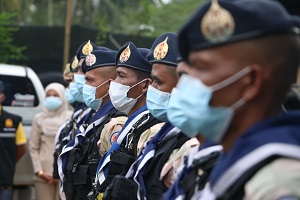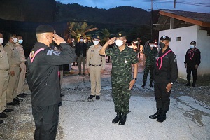 พลตรี ปราโมทย์ พรหมอินทร์ รองแม่ทัพภาคที่ 4 / รองผู้อำนวยการรักษาความมั่นคงภายในภาค 4 ส่วนหน้า กล่าวว่า เป้าหมายในการลงพื้นที่วันนี้คือการให้กำลังใจและนำข้อเน้นย้ำของ พลโท ศานติ ศกุนตนาค แม่ทัพภาคที่ 4 / ผู้อำนวยการรักษาความมั่นคงภายในภาค 4 ซึ่งได้ให้ความสำคัญกับแผนเพิ่มประสิทธิภาพเจ้าหน้าที่อาสาสมัครประจำพื้นที่ ปีที่แล้วได้มีการส่งมอบความรับผิดชอบให้กับกรมการปกครองกระทรวงมหาดไทย อย่างไรก็ตามในปีนี้ได้มีการปรับกำลังเจ้าหน้าที่ทหาร ที่เป็นเจ้าหน้าที่โครง ออกไปถึง 57 ชคต. ซึ่งได้มีการประเมินความพร้อมของ ชคต. แล้ว ว่าสามารถที่จะปรับกำลังเจ้าหน้าที่ทหารออกไปได้ แต่แม่ทัพภาคที่ 4 ยังคงเป็นห่วง จึงได้ให้เน้นย้ำกำหนดแนวทางการปฏิบัติ โดยเฉพาะในเรื่องของการติดตามสถานการณ์ด้านการข่าว, การปฏิบัติตามบทบาทหน้าที่ที่ได้มีการซักซ้อมและทำความเข้าใจกันแล้วก็คือ 3 นอก 4 ใน, การเฝ้าระวังการก่อเหตุขณะกลับไปพักที่บ้าน, การเฝ้าระวังปัญหายาเสพติดโดยเฉพาะกำลังพล เหล่านี้เป็นสิ่งที่แม่ทัพภาคที่ 4 เน้นย้ำ หลังจากนี้จะเข้าสู่การประเมิน เป็นการประเมินทั้งในระดับพื้นที่ของอำเภอ จังหวัด และหน่วยเฉพาะกิจจะเข้ามาประเมินเพื่อเตรียมความพร้อมไว้ก่อน จากนั้นจะมีการส่งชุดประเมินของกองบังคับการควบคุมกองอาสารักษาดินแดน จังหวัดชายแดนภาคใต้ มาทำการประเมินทั้ง 5 ด้าน สิ่งที่เป็นความคาดหวังของกองอำนวยการรักษาความมั่นคงภายในภาค 4 ส่วนหน้า และกรมการปกครอง คือ สมาชิกชุดคุ้มครองตำบล สามารถปฎิบัติหน้าที่ในการดูแลภารกิจเชิงรับแทนกำลังเจ้าหน้าที่ทหารได้ 100 เปอร์เซ็นในอนาคต เพราะทุกคนคือคนในพื้นที่จะทำหน้าที่ดูแลครอบครัวและคนในชุมชนของตนเอง สิ่งที่จะนำไปสู่ความสำเร็จของ ชคต. นั่นคือการมีส่วนร่วมของกำนัน ผู้ใหญ่บ้าน และพี่น้องประชาชนในชุมชน